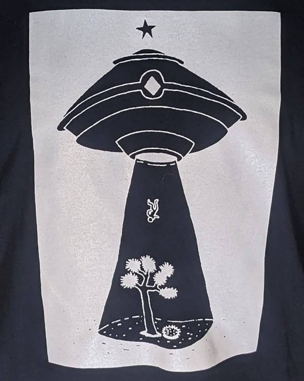 Designed and screen-printed in the USA, this cult-favorite tee showcases a bold Alien Abduction graphic that captures the strange magic of Joshua Tree and the mystery of UFO visitors. Whether you're blazing trails or chasing stardust at midnight, this shirt is made for those who live with one boot on Earth and the other in the stars.
